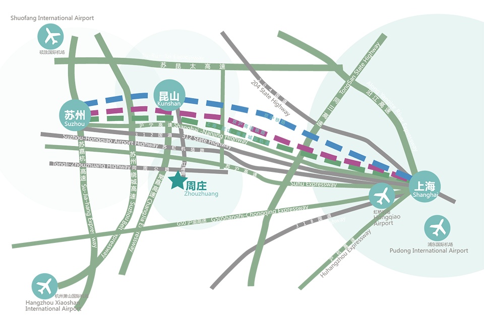 沿滬寧(ning)高(gao)速(su)、滬杭(hang)高(gao)速(su)、蘇嘉杭(hang)高(gao)速(su)等(deng),至周莊出口下,可(kě)快速(su)抵達周莊古(gu)鎮。
