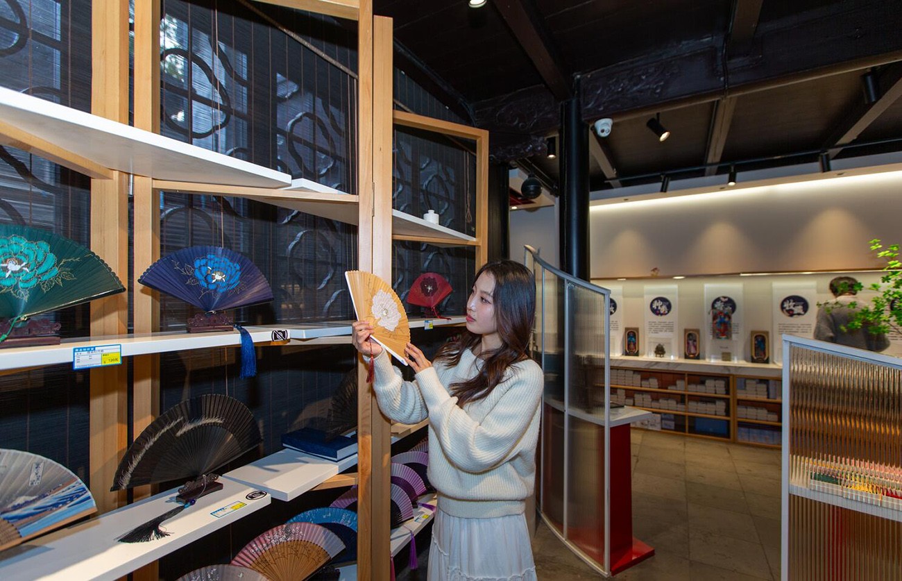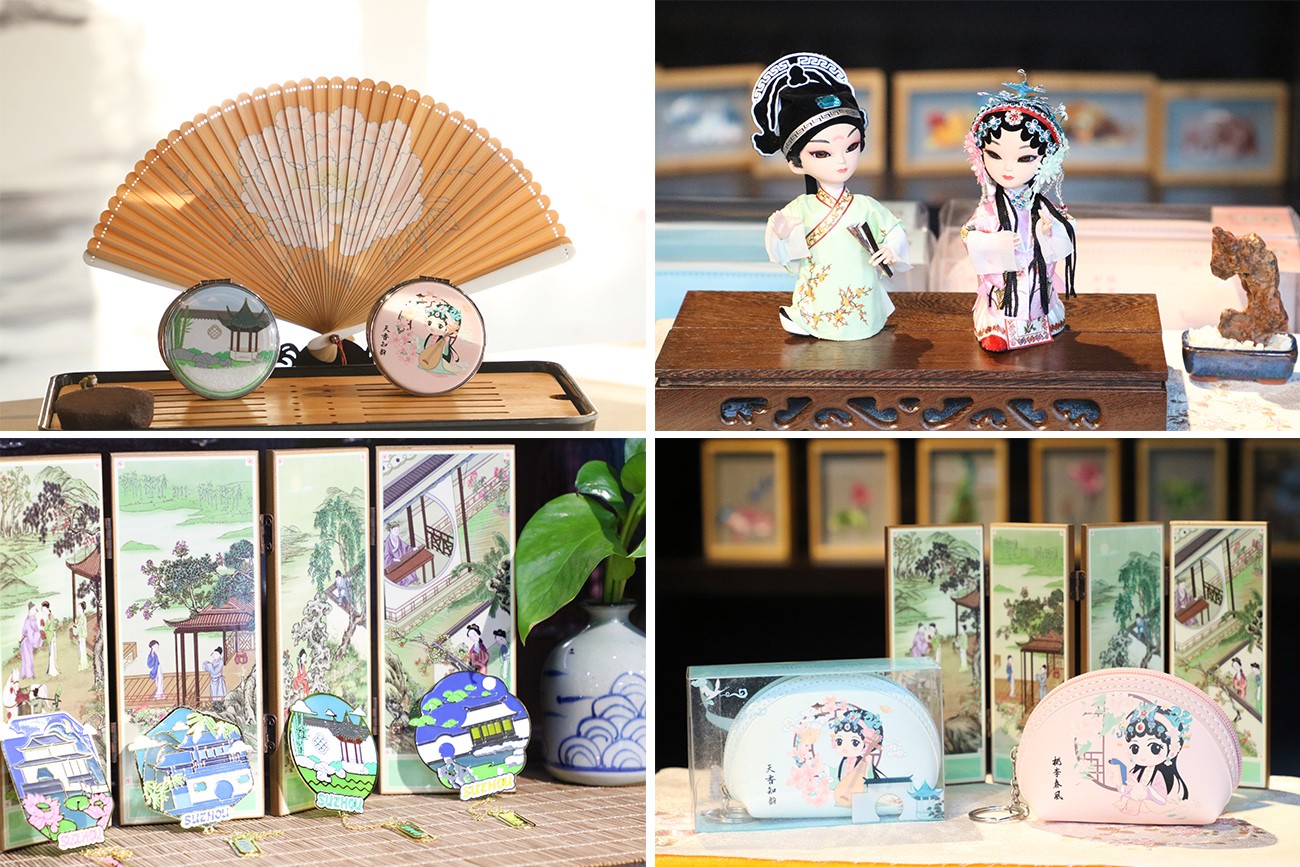 This cultural and creative store offers a variety of Jiangnan water town style products, including tea cups, embroidery, Kunqu opera and Zhouzhuang stoves.